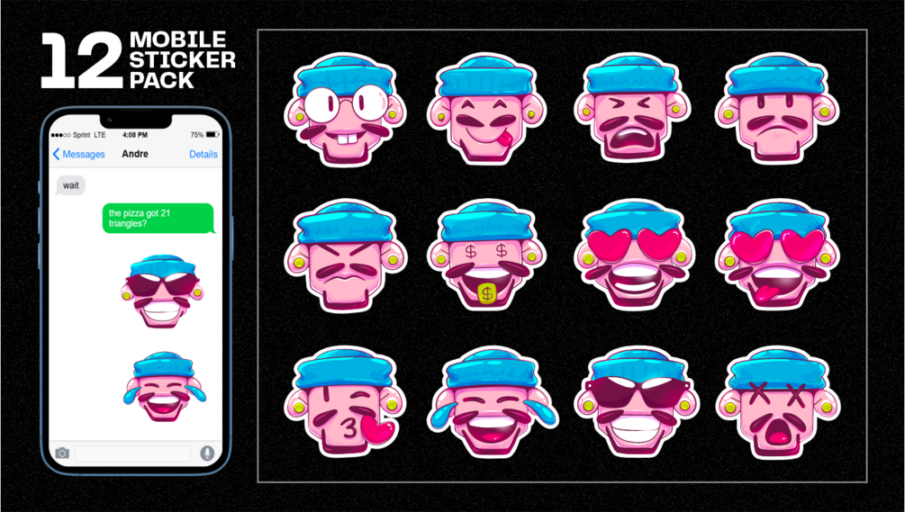 • 12 bold, colorful, and expressive sticker designs